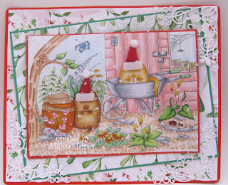 I've chosen to use these little kitties, 'At the bottom of the garden'. They're getting in the mood for Christmas with their little hats on.